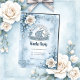 Blommigt Ram med Ro och keltisk design. Bilden har en känslig blommigt ram med ett mjukt, drömmande estetiskt utseende. Vit ros med subtle beige centers och muted blue-grönt löv lägger till det översta lämnat hörnet och hörnen av grund-högerna. Själva ram är uppbyggt på ett isig-blått, keltiskt inspirerat sätt. En svag, cirkelformad keltisk knut mönster syns i bakgrunden.
