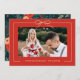 Vackra blommigtar julfotkort har en söt delikat båge och festiv röd och grönt färgstark botaniskt mönster med centrerad framfoto.
