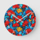 Blommigt Red gula blommor Mönster-13075 Rund Klocka