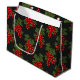 Denna utformning har ett blommönster av röda julbär och gröntens blad i mörk grönt bakgrund. #blommigt #christmas #helgdagar #presentnummer #wrapping