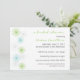 Vitt inbjudningskort för möhippan med grönt och turkosa blommor och ljusa grått-reflektioner.Om du vill se den här designen i ett annat stil eller färg kan du skicka e-post till mig på orchardgreetings@gmail.com. Jag skulle vara lycklig för att hjälpa er.