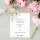 En vit chic bakgrund. Dekorerad med en blommigt för guld och rosa, blomma från ro och grönt, vattenfärgad eukalyptus löv, sprig, grönsak och faux ro sprig. Anpassa och lägg till namn och information. Bakåt: ro guld, färg. 1 lakan = 1 inbjudan tryckt kant till kant.