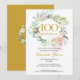Den här chicens botaniska 100-årsinbjudan med en känslig blommigt i vattenfärg kan vara personlig med din speciella daginformation. Den omvända har en matchande blommigt garland som ramar in ditt monogram initialer i elegant på en gyllene bakgrund. Designad av Thisisnotme©