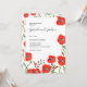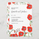 Blommigt röda vallmo, en modern minimal bröllopsinbjudan med vallmo mönster på baksidan.