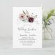 Denna lunchinbjudan till romantik bröllop i blommigt är perfekt för en möhippa i eleganten. Den moderna, roliga bohos-designen har romantiska vattenfärger i mjuka toner av burgundi, mauve, rosa och gräddvit med grönt löv.