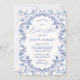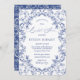 Blommigt Romantik Chinoiserie Porcelain Blue Inbjudningskort för möhippan Benice och Elegant Hand målade Ornate Blommigt Vines and Fern med Möhippa Anpassningsbar Hand Lettering. Porcelain Blue.