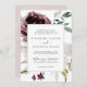Romantik formella bröllopsinbjudan i blommigt är perfekt för ett elegant bröllop. Den moderna, roliga bohos-designen har romantiska vattenfärger i mjuka toner av burgundi, mauve, rosa och gräddvit med grönt löv.