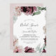 Blommigten är romantik inbjudningskort för möhippan perfekt för en dusch i elegant bröllop. Den moderna, roliga bohos-designen har romantiska vattenfärger i mjuka toner av burgundi, mauve, rosa och gräddvit med grönt löv.