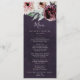 Det här menykortet för romantik-plommon på bröllop-middagen i blommigt är perfekt för ett elegant bröllop. Den moderna, roliga bohos-designen har romantiska vattenfärger i mjuka toner av burgundi, mauve, rosa och gräddvit med grönt löv. Den här menyn kan användas för bröllopsmottagning, repetitionsmiddag eller vad som helst.