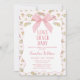 Blommigt Rosa Bow Kärlek Shack Baby Baby Shower Invation Sweet rosa bow and rosa blommönster shack kärlek shack Mated Baby duschemed för babyduschinbjudan för baby till flicka, som också innehåller en vågigt vit ram.