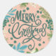 Blommigt rosa god jul runt klistermärke