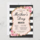 Blommigt Rosa Peonies Mors dag Brunch Inbjudan. Guld Glitter. Blommigt för vattenfärg Chic blomma. Svarta och vita Rand. Vattenfärgen Blommigt Färg. Utskriftsformat digitalt.