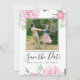Med den här blommigten sparar du datumkorten med rosa målade peonier. Kortet har en ställe-hållare där du kan lägga till ett förlovning-foto