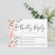 Rosa Quinceañera Party OSA kort: Den här enkla OSA kort och eleganten har rosa vattenfärgblommor och ro på framsidan och ovanpå baksidan, som ställs in mot en vit bakgrund. En blandning av svart och rosa typsnitt skapar en snyggt kontrast, men du kan anpassa allt färg för att matcha ditt tema. På framsidan visas "Kinly Reply" i skriptkalligrafi, med utrymme för skriva i namn för individer eller familj. Baksidan visar namn och Mis Quince i i ett elegant-skript. Med sin chic, minimalistiska utformning, kompletterar den här OSA kort en mängd olika Quinceañera-teman och tillför firande en något sofistikerad form.