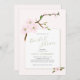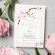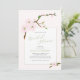 Fintvätt av elegant, blommar av körsbär, blommor från vår sommarträdgårdsbröllop inbjudningskort för möhippan med pastellsage grönt calligraphy script och bladage.
