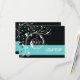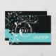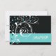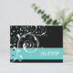 Elegant blommigt rulla löv svarta akvariet flourish bröllop OSA response/response card, med vit rulla blad, snurrar, krukor och akvakapunkter på svart bakgrund. Det finns ett blått turkosband med texten till grund. Perfekt för utformning av klasser, snyggtar och chic för ett vinterbröllop.