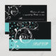 Elegant blommigt rulla löv svarta akvariet flourish bröllop OSA response/response card, med vit rulla blad, snurrar, krukor och akvakapunkter på svart bakgrund. Det finns ett blått turkosband med texten till grund. Perfekt för utformning av klasser, snyggtar och chic för ett vinterbröllop.