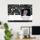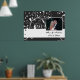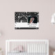 Elegant blommigt rulla löv svart, vitt blomsande bröllop-foto poster utskrift, med vit rulla blad, snurra och kurvor och vita punkter på svart bakgrund. Det finns ett vitt band med din text till grund. Klassdesign, snyggt och chic med fotot.