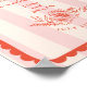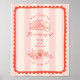 Bilder med röd blommigt i konturteckningen och hand plockade skalade gräns med röd text över rosa strimlad bakgrund.