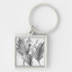 Blommigt Silhouette - Grått Fyrkantig Silverfärgad Nyckelring