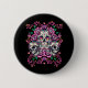 Blommigt, skelett, vattenfärgsfärg rosa, Halloween Knapp