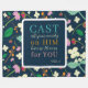Den här designen har ett blommönster som innehåller den bibelvända versen 1 Peter 5:7.