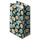 Den här lilla storleka pappra presentpåsen visas i en underbar blommigt av blått och vitt daisy på mörk färg. Anpassa den här presentväskan eller köp som det är. Licensierad utskrift