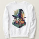 Blommigt Skull med Witch Hat Pixel Art Lång Ärmad Tröja