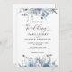 Elegantens blommigt - inbjudan till bröllop med vattenfärg. Vackerlig bröllopsinbjudan till modern blommigt med handmålade blommor i dammig och skifferblått med kalligrafi av eleganten. Du kan anpassa texten, teckensnittet stil, färg och storlekt framför och bakom inbjudan. Kontakta mig gärna om du vill ha matchande artiklar.
