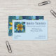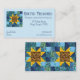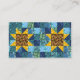 Blommigt Solros på Blue Patchwork Quilt Geometric Visitkort