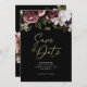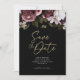 Skicka gästerna till bröllopsdagen med den här blommigten och spara datuminbjudan. Utformningen har en romantisk illustration av blommigten i mörkens bakgrund, som skapar en känsla av gotisk, mörk elegans. Perfekt för ett fallbröllop eller vinterbröllop, den här moody sparan vår dag kommer att ange tonen för ert oförglömliga firande.