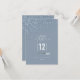 I den här samlingen används ett handskrivet, namnteckning teckensnitt i kombination med geometriskt ramar, gnistrande bakgrunder och lush-blommigtar för att ange en varm och intim ton för bröllop. Det här bordsnummer-kortet från bröllop, med det fet numret och ro och bakgrunden i mörk dammiga blå, är enkelt men elegant och innehåller en mall för att lägga till ditt eget namn- och bröllop-datum. Sök i ID889 om du vill visa alla produkter i den här uppsättningen för bröllop.