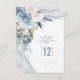 I den här samlingen används ett handskrivet, namnteckning teckensnitt i kombination med geometriskt ramar, gnistrande bakgrunder och lush-blommigtar för att ange en varm och intim ton för bröllop. Det här bordsnummer-kortet från bröllop, där blommigten i hörnet är arrangemang i dammig blått och grädde, är en elegant för att lägga till ditt eget bordsnummer, namn och bröllop. Sök i ID889 om du vill visa alla produkter i den här uppsättningen för bröllop.