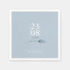 I den här samlingen används ett handskrivet, namnteckning teckensnitt i kombination med geometriskt ramar, gnistrande bakgrunder och lush-blommigtar för att ange en varm och intim ton för bröllop. Den pappra napkin från bröllop som visas här, med det djärva bröllop-datumet och den enda ron och bakgrunden i skuggor av dammigt blått, är enkel men elegant och ger en mall för att lägga till ditt eget tack. Sök i ID889 om du vill visa alla produkter i den här uppsättningen för bröllop.