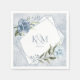 Blommigt Sparkles Bröllop Initialer Dusty Blue ID8 Pappersservett