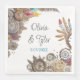 Bröllop napkins med steampunk-temat, med metall-redskap, blommor och fjädrar. Lägg till datum för namn och bröllop i personaliseringsområdet.