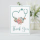 Modern Blommigt Stethoscope Heart Caregiver, Nurse eller Doktor Tack You Card med ett modernt turkos teal steal steoskop formad som ett hjärta och omgiven av söt, feminin blommigt i skuggor av rosa, beige, kräm och sage grönt. Perfekt för att ha tackat dig till den medicinska professionellen som hjälpte dig eller dina kära genom svåra tider! Kontakta oss på katescreationszazzle@gmail.com om du behöver hjälp med designen eller vill behöva hjälp med matchande produkter.