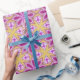 Blommigt stjärnor fuchsia rosa gult mönster presen presentpapper