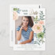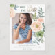 Elegant modernt skript med högskoleexamen eller högskoleexamen med protektionskort med vattenfärgade blommor och gröna blommor. Anpassa med foto och text.