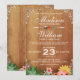 Blommigt suklerar Rustic bröllopsinbjudan. De har olika färgstarka och ljusa blommor ovanpå en träplank. Kant är förskönat med vitt blomstrande inslag. Det här är en underbarare bröllopsinbjudning som är rustik men ändå klassi och öga som fångar.