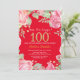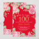 Blommigt Surprise 100 Birthday Guld Glitter Red Inbjudningar