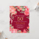 Röd Blommigt Överraskning 50:e födelsedagsinbjudan till kvinnor. Vattenfärg Botaniskt Blommigt blomma. Guld Glitter. Rosa Peonies Blommigt Flowers. Vuxen födelsedag. Burgundy Red Background.