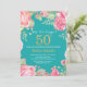 Blommigt Surprise 50:e födelsedagen Guld och Teal Inbjudningar