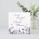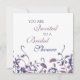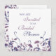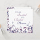 Inbjudningskort för möhippa i elegantens lila, vit och mörk blått design av blommigten, elegant och feminin, anpassade med duschdetaljer. Finns också i tackkort och inbjudningar till brudens sida.
