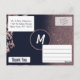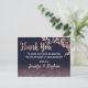 Elegant, chic och enkel, modern faux-tryckt ro guld glitter, blommor och typografi på modern marin blå bakgrund, Tack Postkort. Denna klassiska och sofistikerade utformning är perfekt för alla snyggtar och trendig, inklusive bröllop och dagligt tillfälle. Alla fotoutskrifter.