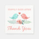 Lägg till pizzazz till bröllop eller nästa evenemang med den här roligten tack för dina blöjor. Dessa söta bröllop-blöjor har ett par rosa- och blåturkos love birds som skickar varandra röda hjärta kysser sitta på grenar av löv med rosa och blåa blommor. Lyckligtvis alltid efteråt och ett tack till er hälsning trycks i fet rosa som ett komplement till handskriften och skriv stil typsnitt mot en vit bakgrund. Tack är perfekt för många evenemang... * Bröllop, möhippor, repetitionsmiddagar * Affärsevenemang * Fundraisers and chaires * Anniury party * Banquets - dinners, prisutdelningar osv. * Försäljningsevenemang