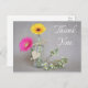 Handskrivet tack som vykort är ett underbart sätt att visa uppskattning för din familj, dina vänner och dina kunder. Det här charmerande blommigten innehåller blommor av rosa och gult i ett flaska av glas med en märkre av hjärtat och ett vitt tack till hälsning i ett fet vitt kalligrafteckensnitt som markeras mot en grå grått-bakgrund. Kortets baksida är tom för ditt meddelande. Tack för att du har vykort är det ekonomiska alternativet till vanliga tackkort när du vill skicka ett snabbt tackbrev. Daisy Tack för att du postkort är underbara för många tillfälle.... * Personanteckningar * Bröllop, möhippor och repetitionsmiddagar * Företag * Bifoga till gåva basket, party favors etc. * Bekväma handlingar * Fundraisers / chaires rulla down om du vill visa andra produkter som du kan ha nytta av.