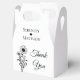 Fira din speciella dag med dessa minimalistiska svarta och vita blommigtar "Tack"-favoritboxar, som innehåller roliga solblommor och vilda blommor i en charmerande botanisk design. Perfekt för vilken säsong som helst - vår, sommar, fall eller vinter - tillför de här favoritrutorna en aning elegans till bröllop, möhippa eller trädgård party. Med sin rena och tidlösa utformning är de idealiska för land, botaniska eller moderna minimalistiska teman, vilket skapar en glatt atmosfär som dina gäster kommer att ha i kärlek. De här favoritlådorna är perfekter för att hålla upp mattor, små gåvor eller party-essentiella firanden.