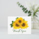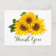 Tillsätt lite solljus till tackkortet med detta soliga gult solroskort. Det här charmerande blommigten har solrosor med skarp gult och lush grönt löv markeras mot en skarp vit bakgrund. Tack för att du skriver ut ett fet mörk grönt teckensnitt för kalligrafi. Baksidan av vykortet är tom för ditt personliga meddelande. Postkort är det ekonomiska alternativet till dyra gratulationskort. Solrostack för att du har lagt ut kort är perfekt för... * Bekvämhetshandling * Bröllop / party * Uppskattning för gåvor * Företag * Nybörjare och välgörenhetsorganisationer * Stationerigåvor - figurera några vykort med ett sött band