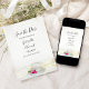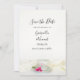 Det söt Blommigt Tea Kopp med Rosa ros Bröllop spara datum-tilläggskort anger tonen för ceremonin och mottagningen i giftermål. Den här elegant anpassningsbarna blomstrar den kritiska behållan för datumangivelsen med ett digitalt målat botaniskt fotografi av te kopp och saucer med blommor från guld kant och rosa ros med vit satin. Perfekt till paret som planerar ett tebröllop i party eller på högtebröllop.